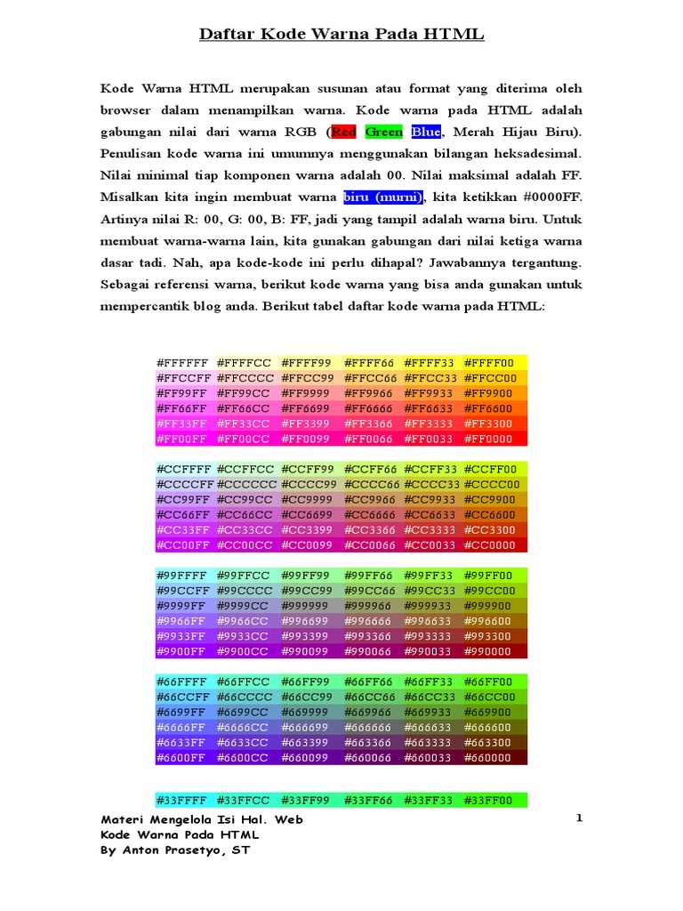 Pdf Kumpulan Kode Warna Html Paling Lengkap Terbaru Zayn